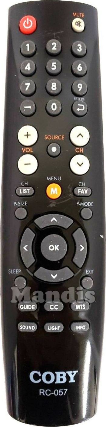 original remote control RC057 used for televisions for the brand COBY. This is an original remote control.
