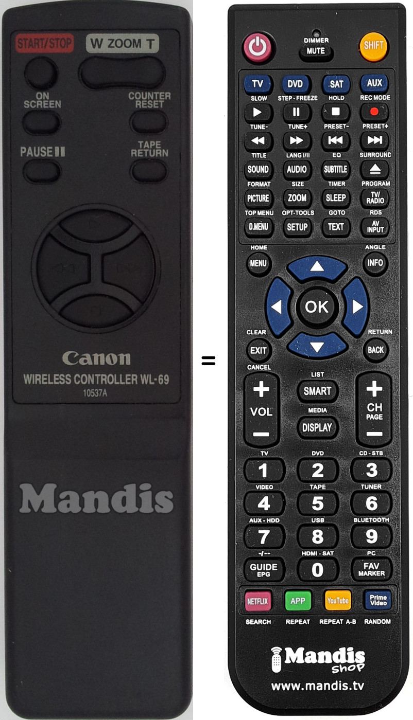 Home > Brands > Remote controls Canon > Remote control for CANON 10537A (WL-69)