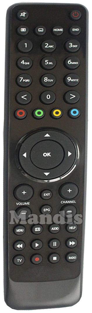 Power, Mute, Text, Subtitle, Home, End, 1, 2, 3, 4, 5, 6, 7, 8, 9, 0, <, >, Red, Green, Yellow, Blue, Up, Right, Down, Left, OK, Volume +, Volume -, Exit, EPG, Channel +, Channel -, Menu, , Audio, Help, <<, Play, Pause, >>, TV, Rec, Stop, Radio