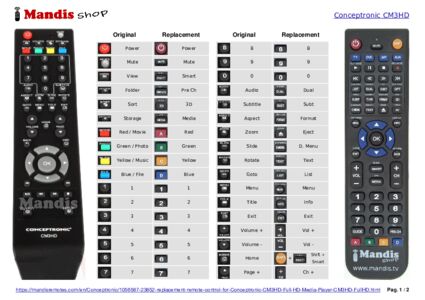 Remote control for CONCEPTRONIC CM3HD Full HD Media Player (CM3HD-FullHD)
