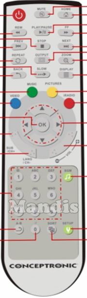 original remote control C54WMPV1 used for multimedia hard drive for the brand Conceptronic. This is an original remote control.