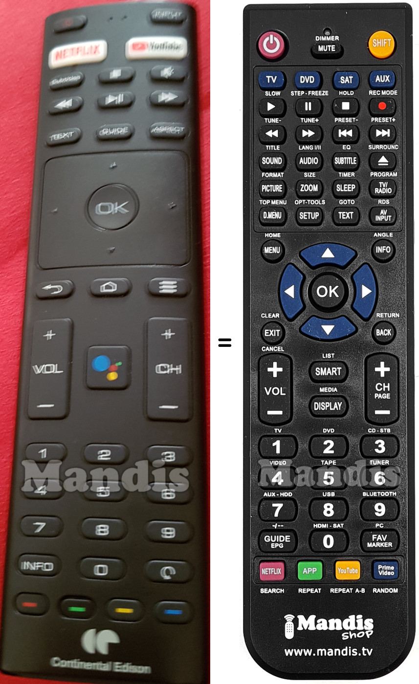 Remote control for CONTINENTAL EDISON CELED43SA220B7