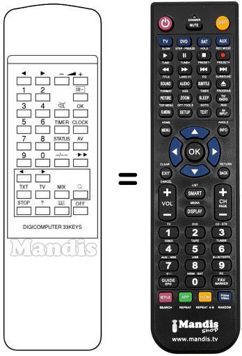Remote control to replace the original DIGICOMPUTER 33 KEYS and all its functions.