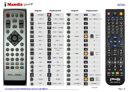A document is included to help you use the new remote control easily, showing the button correspondence.