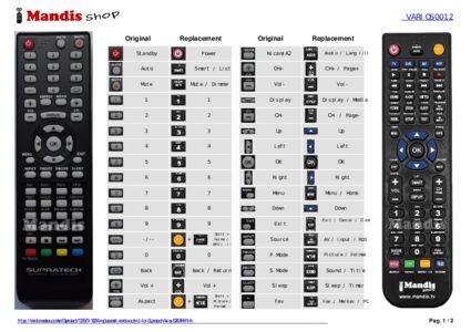 Below, we will show you the correspondence between each button on the original remote control and the button that performs the same function on the replacement remote control. In some cases, you may need to press the SHIFT key before pressing another button to perform certain actions. These additional functions are often not widely used and are included to facilitate understanding of the replacement remote control, or because the original remote control has more buttons than its equivalent.