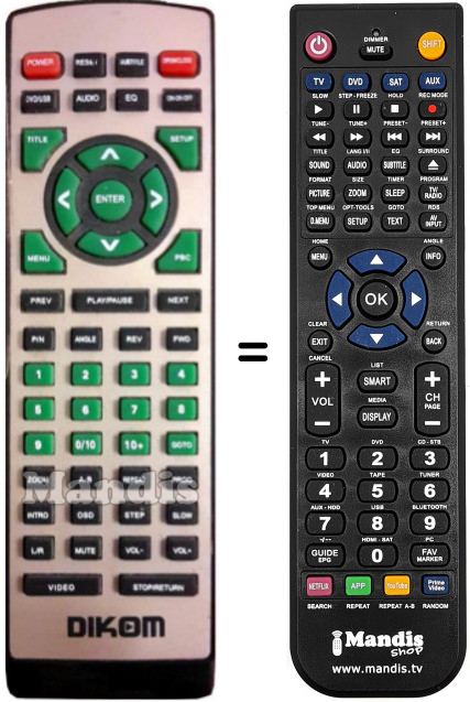 Remote control to replace the original and all its functions.