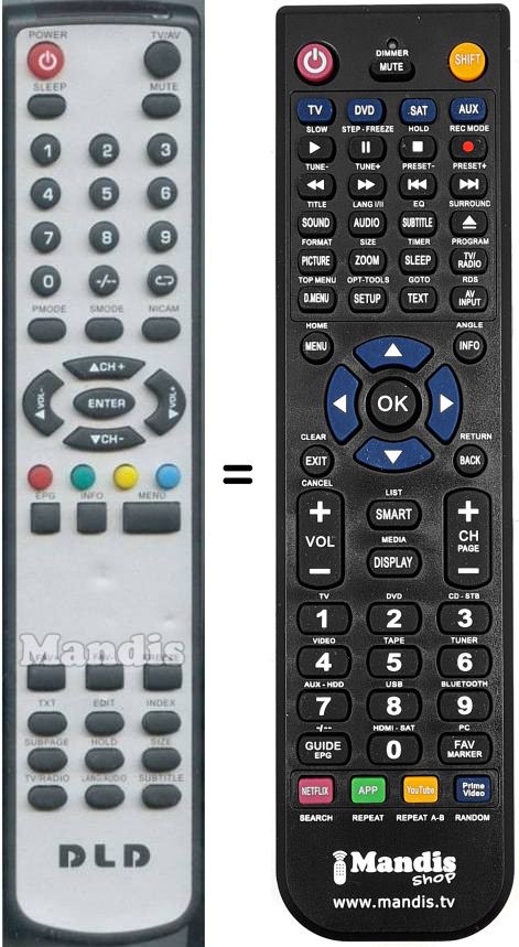 Remote control to replace the original and all its functions.