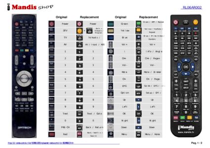 This remote control fully replaces your RL06AR002B and offers all the functions of the original.