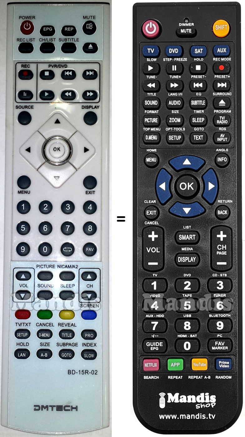 This remote control fully replaces your BD15R02 and offers all the functions of the original.