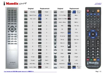 Below, we will show you the correspondence between each button on the original remote control and the button that performs the same function on the replacement remote control. In some cases, you may need to press the SHIFT key before pressing another button to perform certain actions. These additional functions are often not widely used and are included to facilitate understanding of the replacement remote control, or because the original remote control has more buttons than its equivalent.