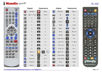 Below, we will show you the correspondence between each button on the original remote control and the button that performs the same function on the replacement remote control. In some cases, you may need to press the SHIFT key before pressing another button to perform certain actions. These additional functions are often not widely used and are included to facilitate understanding of the replacement remote control, or because the original remote control has more buttons than its equivalent.