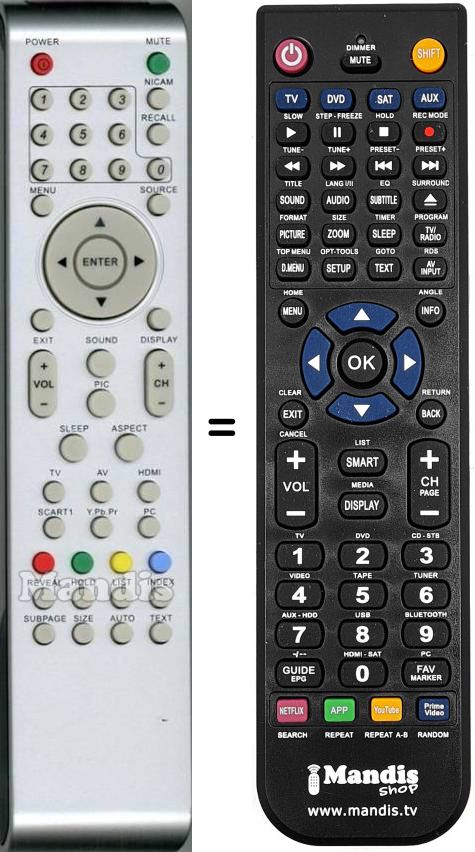 Remote control to replace the original and all its functions.