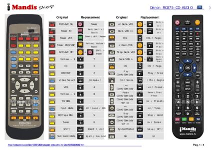 Below, we will show you the correspondence between each button on the original remote control and the button that performs the same function on the replacement remote control. In some cases, you may need to press the SHIFT key before pressing another button to perform certain actions. These additional functions are often not widely used and are included to facilitate understanding of the replacement remote control, or because the original remote control has more buttons than its equivalent.