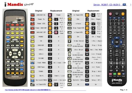 Below, we will show you the correspondence between each button on the original remote control and the button that performs the same function on the replacement remote control. In some cases, you may need to press the SHIFT key before pressing another button to perform certain actions. These additional functions are often not widely used and are included to facilitate understanding of the replacement remote control, or because the original remote control has more buttons than its equivalent.