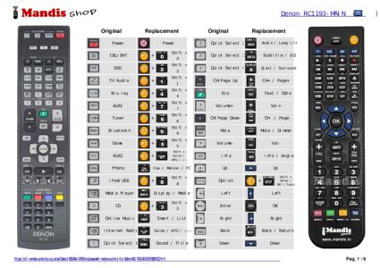 Below, we will show you the correspondence between each button on the original remote control and the button that performs the same function on the replacement remote control. In some cases, you may need to press the SHIFT key before pressing another button to perform certain actions. These additional functions are often not widely used and are included to facilitate understanding of the replacement remote control, or because the original remote control has more buttons than its equivalent.
