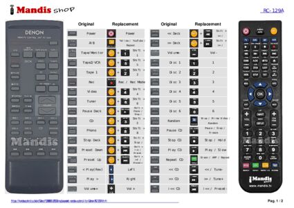 This remote control fully replaces your RC 129A and offers all the functions of the original.