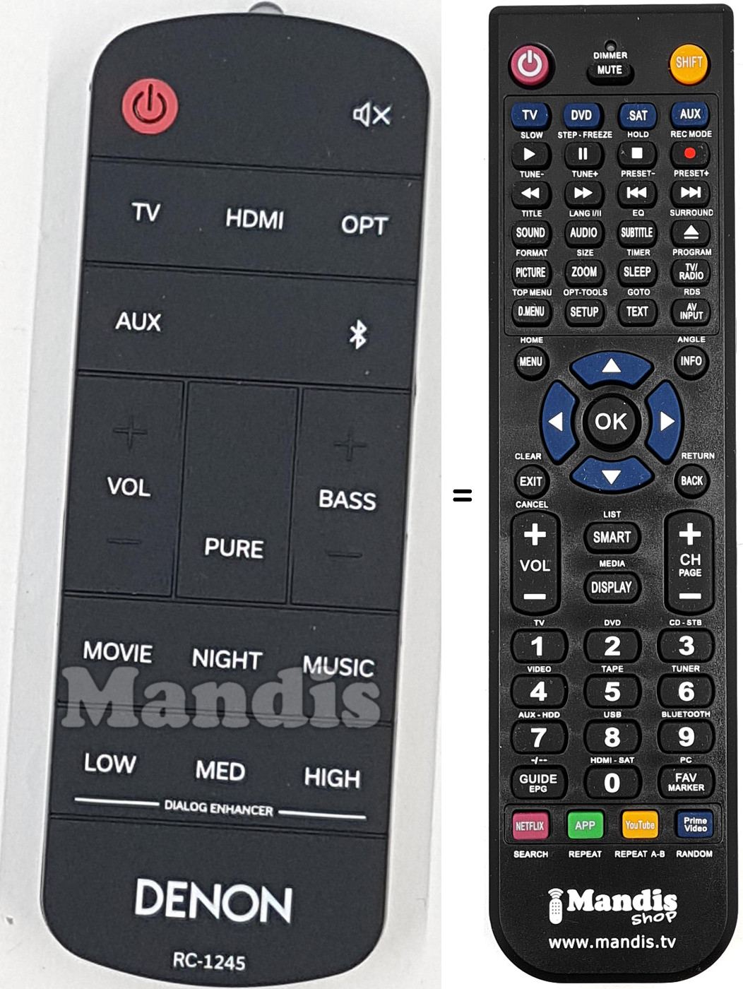 Remote control for DENON RC-1245 (919307102600S)