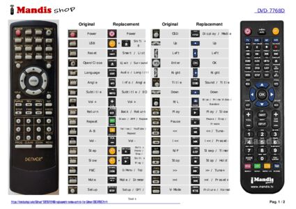 This remote control fully replaces your DVD-7768D and offers all the functions of the original.