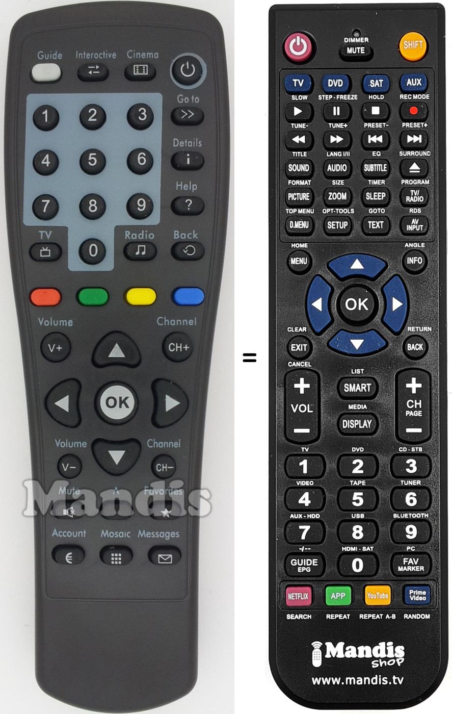 Remote control to replace the original and all its functions.
