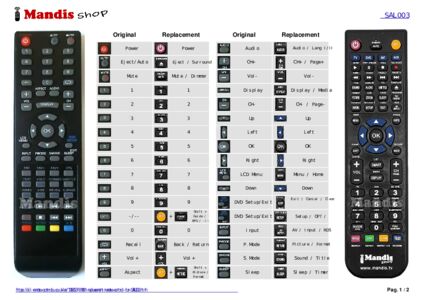 Below, we will show you the correspondence between each button on the original remote control and the button that performs the same function on the replacement remote control. In some cases, you may need to press the SHIFT key before pressing another button to perform certain actions. These additional functions are often not widely used and are included to facilitate understanding of the replacement remote control, or because the original remote control has more buttons than its equivalent.