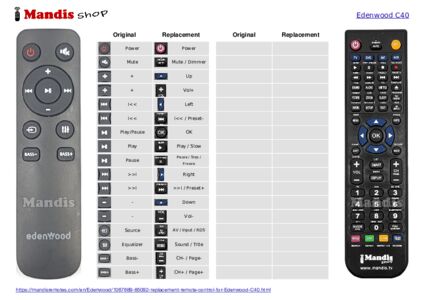 Below, we will show you the correspondence between each button on the original remote control and the button that performs the same function on the replacement remote control. In some cases, you may need to press the SHIFT key before pressing another button to perform certain actions. These additional functions are often not widely used and are included to facilitate understanding of the replacement remote control, or because the original remote control has more buttons than its equivalent.
