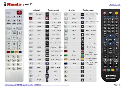1. Look at the images of the two remote controls: the original (left) and the replacement (right).