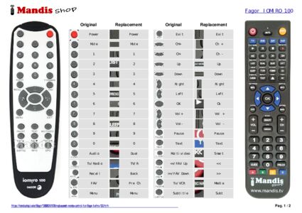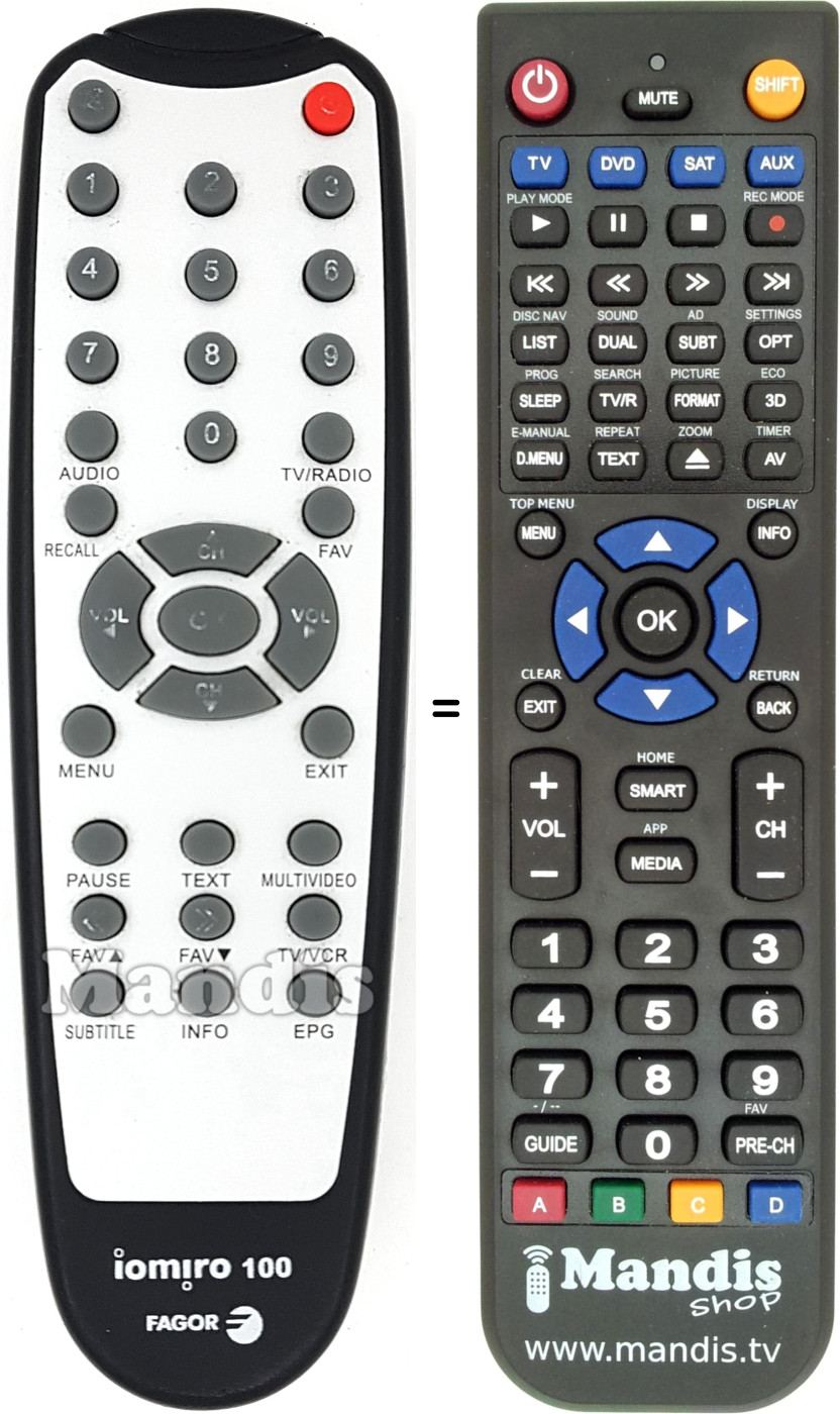 Below, we will show you the correspondence between each button on the original remote control and the button that performs the same function on the replacement remote control. In some cases, you may need to press the SHIFT key before pressing another button to perform certain actions. These additional functions are often not widely used and are included to facilitate understanding of the replacement remote control, or because the original remote control has more buttons than its equivalent.