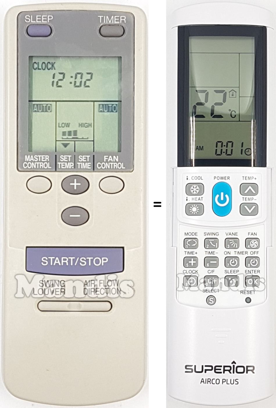 My LG air-conditioner's remote died and need replacement. AircoPlus did the job. I should point out that the code match did not correspond according to manufacturer's table. Let the auto-search code set up do the work. Also, excellent service by Mandis Remotes with a well-protected package.