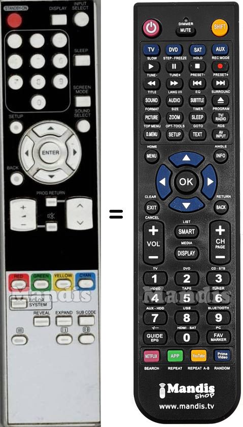 This remote control fully replaces your NF004RD and offers all the functions of the original.