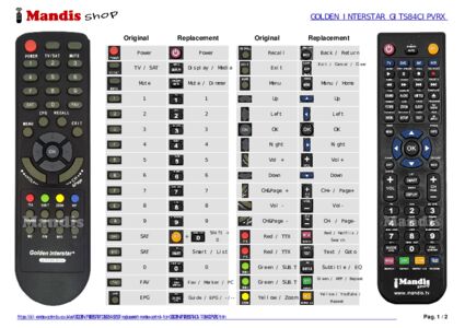 This remote control fully replaces your GI-T/S84CIPVRX and offers all the functions of the original.