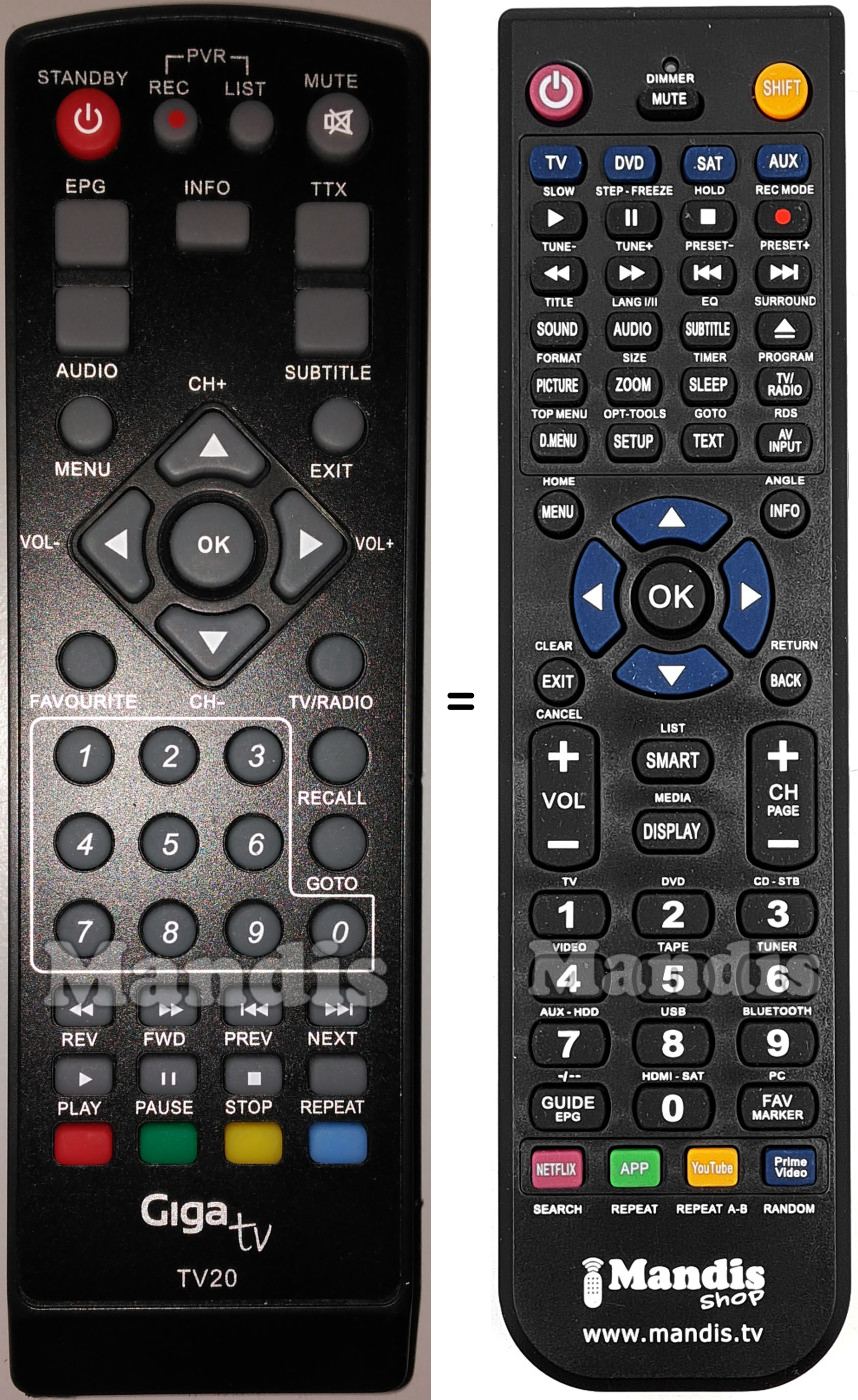 Home > Brands > Remote controls Giga Tv > Remote control for GIGA TV TV20
