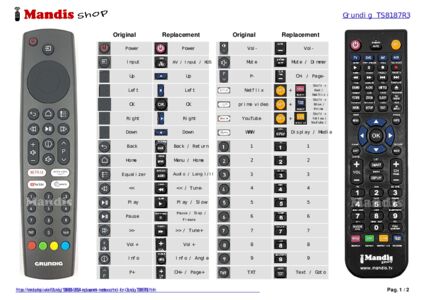 Below, we will show you the correspondence between each button on the original remote control and the button that performs the same function on the replacement remote control. In some cases, you may need to press the SHIFT key before pressing another button to perform certain actions. These additional functions are often not widely used and are included to facilitate understanding of the replacement remote control, or because the original remote control has more buttons than its equivalent.