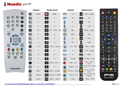 Below, we will show you the correspondence between each button on the original remote control and the button that performs the same function on the replacement remote control. In some cases, you may need to press the SHIFT key before pressing another button to perform certain actions. These additional functions are often not widely used and are included to facilitate understanding of the replacement remote control, or because the original remote control has more buttons than its equivalent.