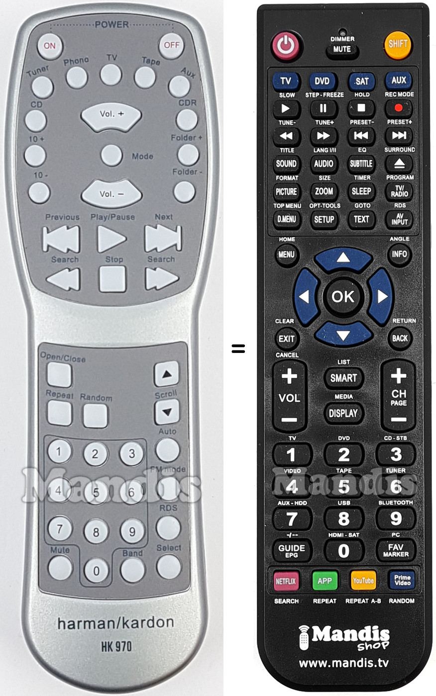 This remote control fully replaces your HK970 and offers all the functions of the original.