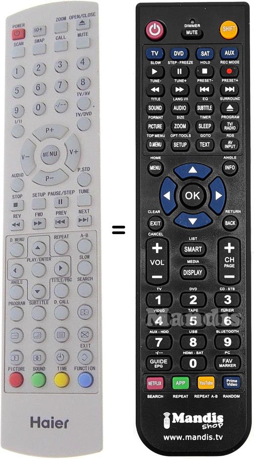 This remote control performs all the functions of the original remote control: