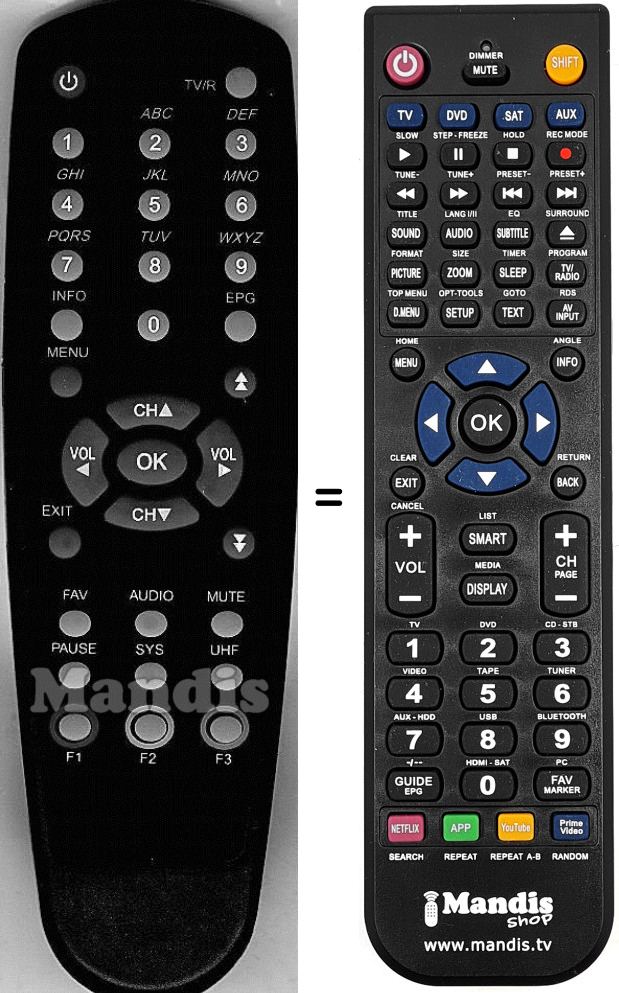 Remote control to replace the original and all its functions.