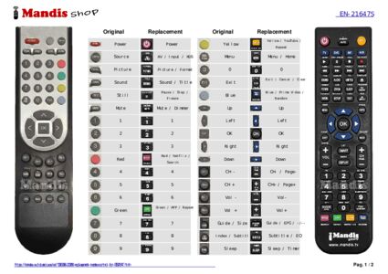 This remote control fully replaces your EN21647S and offers all the functions of the original.