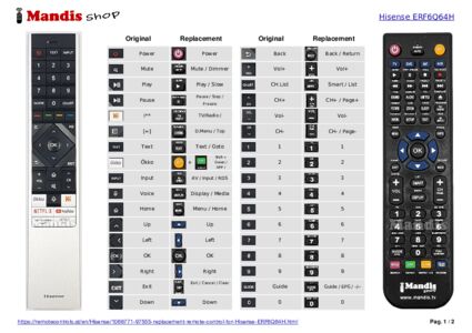 A document is included to help you use the new remote control easily, showing the button correspondence.