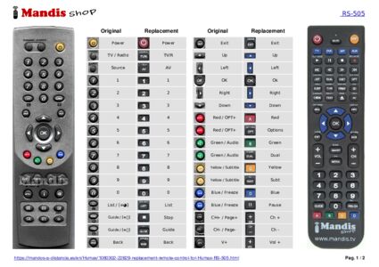 Below, we will show you the correspondence between each button on the original remote control and the button that performs the same function on the replacement remote control. In some cases, you may need to press the SHIFT key before pressing another button to perform certain actions. These additional functions are often not widely used and are included to facilitate understanding of the replacement remote control, or because the original remote control has more buttons than its equivalent.