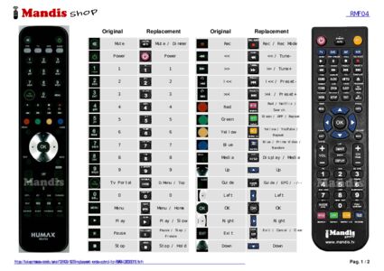 A document is included to help you use the new remote control easily, showing the button correspondence.