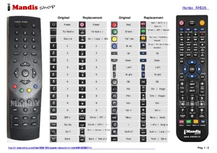 Below, we will show you the correspondence between each button on the original remote control and the button that performs the same function on the replacement remote control. In some cases, you may need to press the SHIFT key before pressing another button to perform certain actions. These additional functions are often not widely used and are included to facilitate understanding of the replacement remote control, or because the original remote control has more buttons than its equivalent.