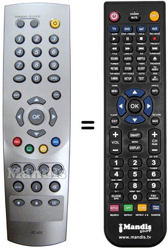 Remote control to replace the original remote RC 633 (014002900) and all its functions.