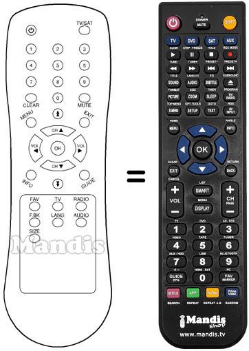 Remote control to replace the original and all its functions.
