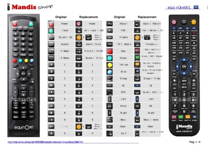 Below, we will show you the correspondence between each button on the original remote control and the button that performs the same function on the replacement remote control. In some cases, you may need to press the SHIFT key before pressing another button to perform certain actions. These additional functions are often not widely used and are included to facilitate understanding of the replacement remote control, or because the original remote control has more buttons than its equivalent.