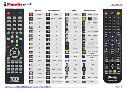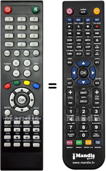 Below, we will show you the correspondence between each button on the original remote control and the button that performs the same function on the replacement remote control. In some cases, you may need to press the SHIFT key before pressing another button to perform certain actions. These additional functions are often not widely used and are included to facilitate understanding of the replacement remote control, or because the original remote control has more buttons than its equivalent.