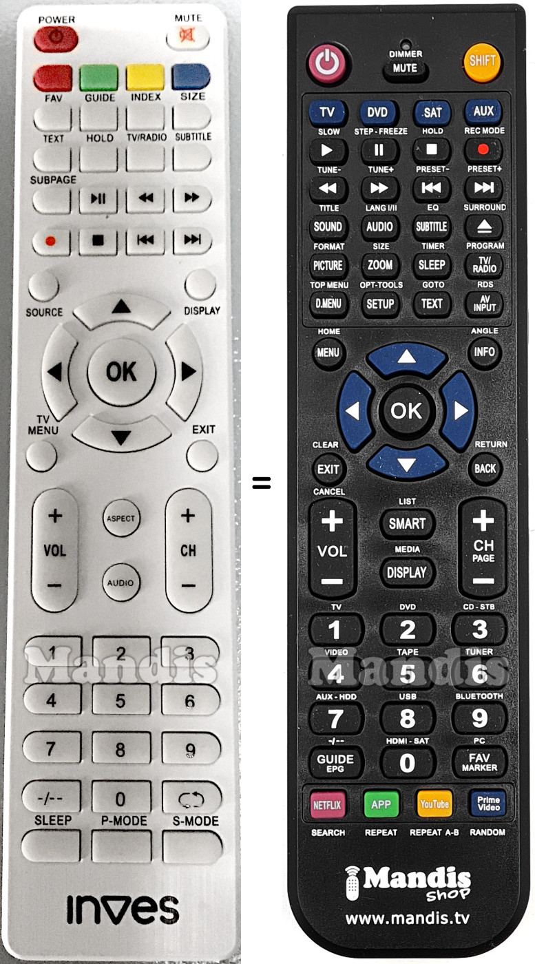 Below, we will show you the correspondence between each button on the original remote control and the button that performs the same function on the replacement remote control. In some cases, you may need to press the SHIFT key before pressing another button to perform certain actions. These additional functions are often not widely used and are included to facilitate understanding of the replacement remote control, or because the original remote control has more buttons than its equivalent.