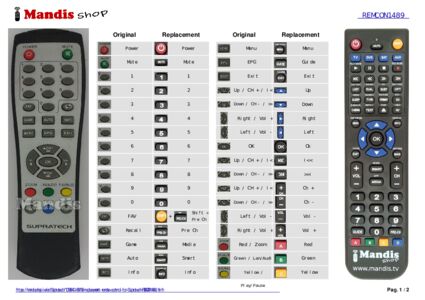 A document is included to help you use the new remote control easily, showing the button correspondence.
