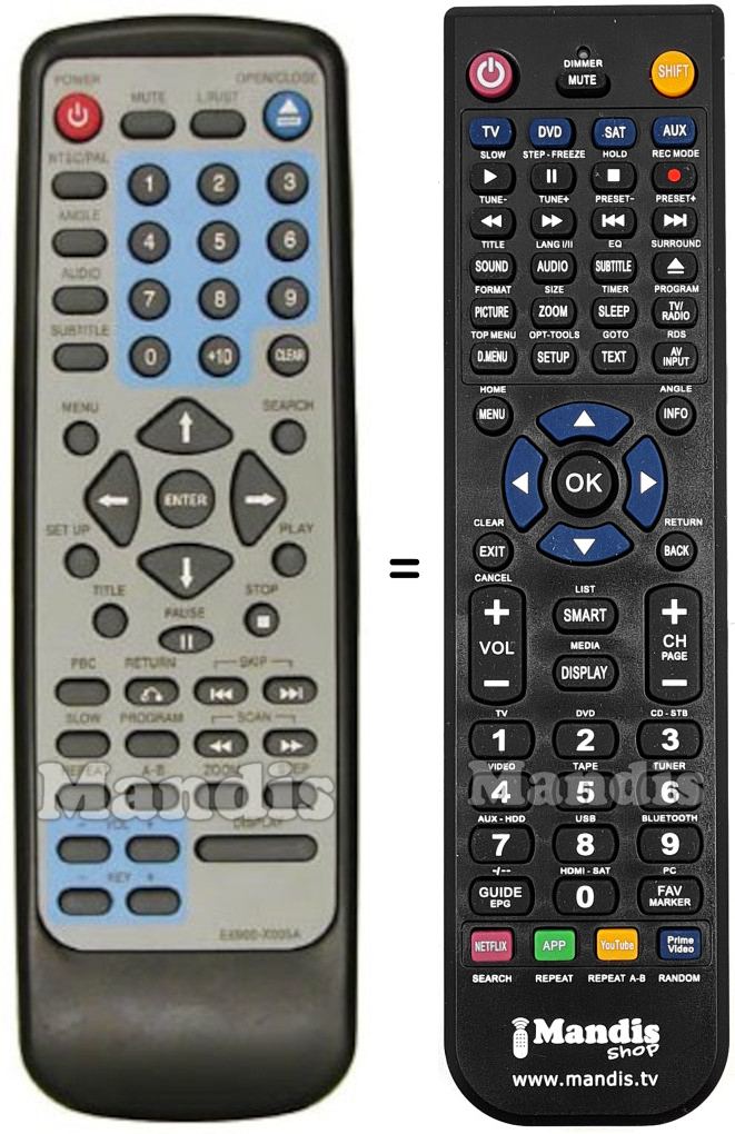 This remote control fully replaces your E6900-X005A and offers all the functions of the original.