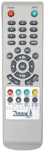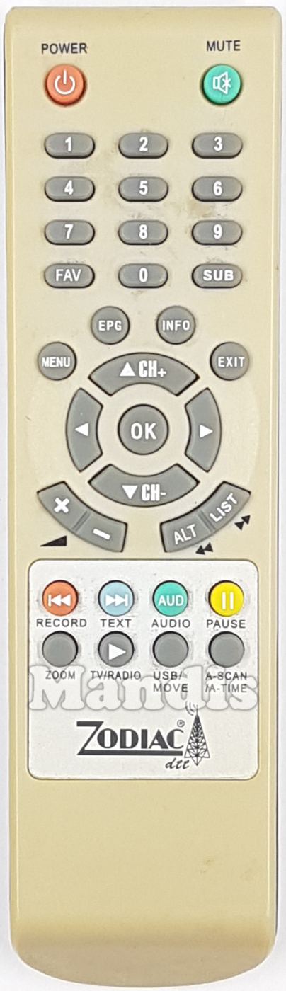 Power, Mute, 1, 2, 3, 4, 5, 6, 7, 8, 9, 0, FAV, SUB, Menu, EPG, Info, Exit, Up/CH+, Down/CH-, Right, Left, OK, Vol+, Vol-, List/>>, ALT/<<, Red/I<</Record, Blue/>>I/Text, Green/Audio, Yellow/Pause, Zoom, Play/Tv/Radio, USB/Move, A-Scan/A-Time