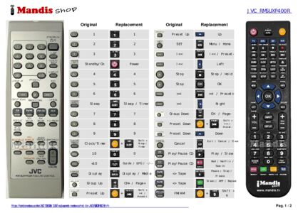 Below, we will show you the correspondence between each button on the original remote control and the button that performs the same function on the replacement remote control. In some cases, you may need to press the SHIFT key before pressing another button to perform certain actions. These additional functions are often not widely used and are included to facilitate understanding of the replacement remote control, or because the original remote control has more buttons than its equivalent.